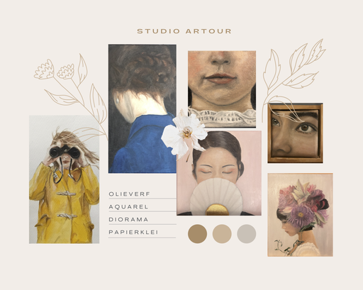 Studio ArTour verwijst naar mijn ( Elke van Tour, 1972) atelier aan huis, waar ik me op ieder vrij moment kan uitleven op allerlei materialen en beeldende technieken. Ik ben heel nieuwsgierig van aard en ik blijf graag leren en uitproberen. Ik houd ook van observeren en dat is terug te vinden in de onderwerpen van mijn werk; ik schilder en teken graag mensen en dieren.